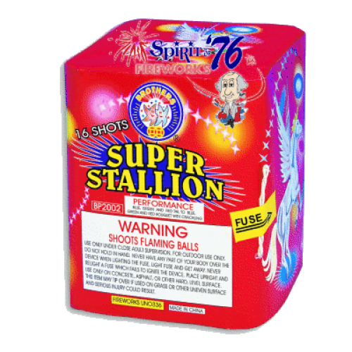 Super Stallion – A Brothers classic! One of the best deals in fireworks, Super Stallion puts on a show of color-changing breaks, crackling and report.